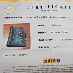 • Includes: Planner binder only (no LV box or dust bag). Entrupy Certificate of Authenticity included.