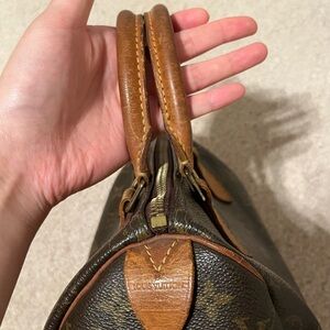 Pre-loved condition: the exterior has normal signs of wear such as rubbing, tarnished hardware, patina on the vachetta and crease, but the canvas is in excellent condition. There are no cracks or exposed pipings. The interior has a minimal wear. The zipper pull has a snap missing (the snap on the other side of the zipper tab in the 4th pic), but does not affect the functionality of the zipper. The bag comes with a lock, but no key.