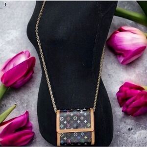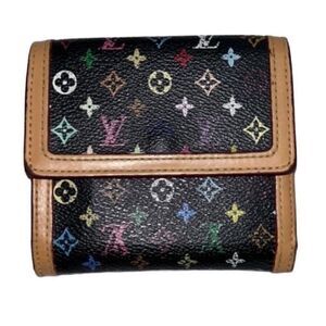 Authentic Louis Vuitton Murakami Black Multicolor Leather Wallet Approx measurements Length 4, Width 4 .