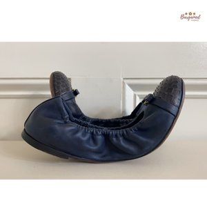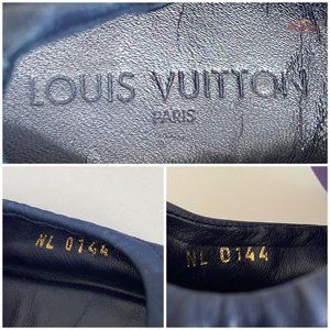 Authentic Louis Vuitton Navy Leather Reptile Toe Bow Scrunch Ballet Flats 37/7