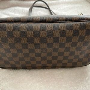 Preowned 100% authentic Louis Vuitton Neverfull MM in the Damier Ebene. Excellent condition. Faint white stain on the bottom of the bag (see photo). This is the original version so it does not come with a detachable pouch. Will not ship with original box but dust bag will be included.