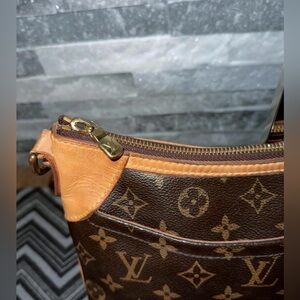 condition: Monogram canvas in good shape, interior is clean. Zipper works great, some tarnish on the puller. Some watermarks and dirt on the vachetta. Chaps are intact. No exposed piping. Overall, very good used condition. Authentication picture at the end. Pictures are taken with a camera flash to show detail, so coloring might be slightly distorted.