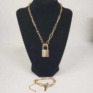 Authentic Louis Vuitton Padlock w/unbranded Stainless Steel Necklace & Bracelet