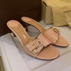 Authentic Louis Vuitton Patent Leather Mule Slide Heels with Box and Dust Bags