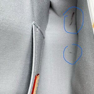 The interior is very clean and in great condition with 2 small grey spots, under the flap on the stitching edge tiny yellow spot. Please see the photos for details.