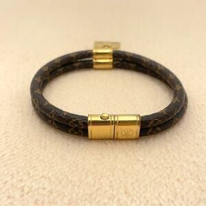 Chic Louis Vuitton bracelet in brown with a gold clasp. Includes branded pouch and box.