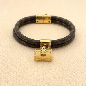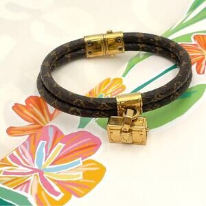 Chic Louis Vuitton bracelet in brown with a gold clasp. Includes branded pouch and box.
