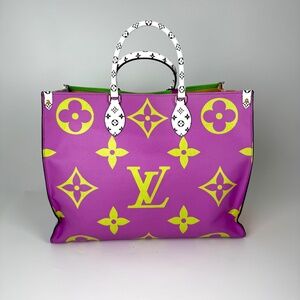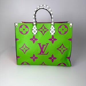 Authentic Louis Vuitton Pink Lilac Green Monogram Giant OnTheGo Multicolor Tote