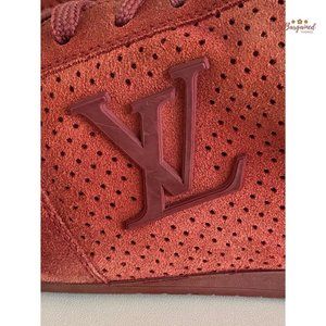 Authentic Louis Vuitton Pink Perforated Suede LV Logo Low Top Sneakers Size 7.5