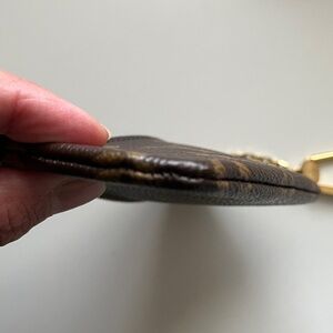Chic key holder with iconic monogram canvas. Features gold-tone hardware and secure zip closure. Zipper still opens and closes smoothly.