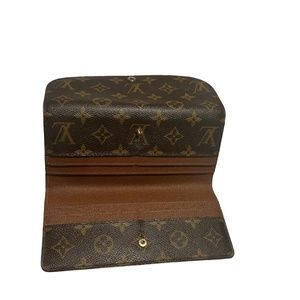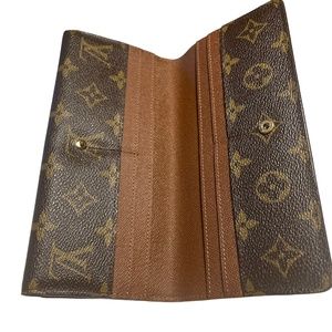 Rare and in excellent condition LOUIS VUITTON Portefeuille Louise Wallet Model No M60460 in Brown Monogram Canvas. Includes original box and dust bag. Makes the perfect holiday gift to give or receive. The wallet has been boxed for years, not used. This trifold long wallet and card case has a front and back flaps that snaps closed. Other than a slight corner fold mark (see last picture) the wallet is in pristine condition.