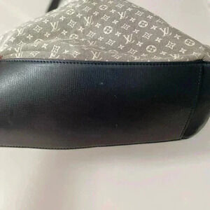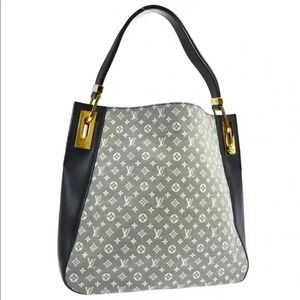 This Louis Vuitton shoulder bag showcases a sophisticated blend of blue and gray hues, adorned with the iconic monogram pattern. The bag's structured yet relaxed silhouette is complemented by a comfortable shoulder strap, making it a stylish choice for any occasion. Gold-tone hardware accents add a touch of elegance to this timeless accessory.