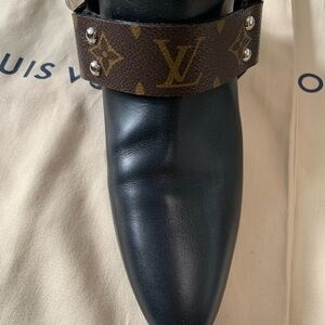 All LV footwear is hand made in Italy by skilled craftsmen and these boots look it! Beautiful black calfskin leather with monogram stirrups and silver hardware make these boots just chic enough to wear them dressy or with jeans. They are perfect with any outfit. I only wore these boots maybe twice. I don’t see any flaws, but please examine pictures carefully. They will come with the box and dust bags. Thanks for shopping my closet🌸 Please note: LV boots typically run about 1/2 size smaller.