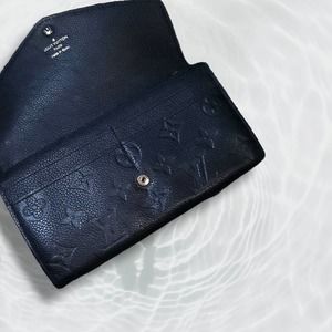 The Sarah wallet combines Monogram Empreinte leather, embossed with Louis Vuitton's iconic Monogram pattern, with a grained-leather flap. The supple feel complements the elegant design of this envelope-style wallet. Its well-organized interior features two spacious compartments, a central zipped coin pocket and numerous card slots.