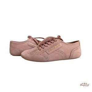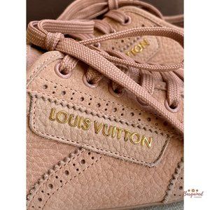 Authentic Louis Vuitton Soft Pink Leather Wing Tip Flat Sneakers Size 37/7