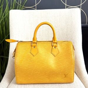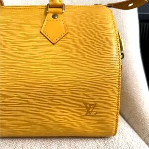 Authentic Louis Vuitton Speedy 25 satchel bag yellow Epi leather