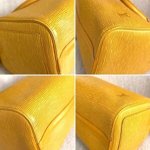This iconic handbag style is crafted from yellow Louis Vuitton's durable Epi leather, known for its distinctive textured grain and resilience to various weather conditions.