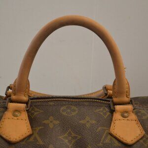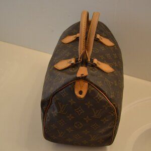 Beautiful Authentic LV Speedy 30 Handbag Model in "Good" overall pre-owned vintage condition w/lots of life left. Leather shows a nice light tan to honey patina color overall(SEE PRETTY PICS). LV Monogram Canvas is in very good overall condition. LV Hardware all still original & showing nice gold color with some wear/tarnish. Inside is nice & clean overall & includes a large roomy main compartment & 1 additional pocket for extra storage. We are starting this price extremely low at a fraction of this bags initial ($1,070.00) cost simply to draw extra interest to this listing & due to some minor cosmetic leather age, wear, dirt, dryness, scuffs(mostly just some dirt & scuffs on the underneath & outside of the handles where carried that shouldn't really be noticeable while in use as not front facing). No odor detected.