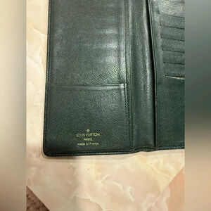 ๐ฏ Authentic Unisex Louis Vuitton Taiga Leather Long Wallet. She is in excellent condition. Normal wear and light pealing in the bill compartment.