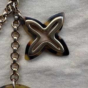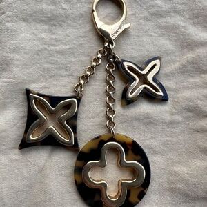 Louis Vuitton Tortoise Shell Resin Insolence Key Holder and Bag Charm. This bag charm features three monogram flowers in tortoise acetate and gold tone brass. This can be clipped on most metallic links in handbags. This item is used. Light surface scratches and signs of wear. Overall good condition. Please see all photos. This item comes as shown. Does not come with box.