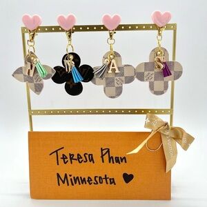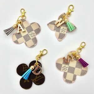 NWOT Customizable Handmade Authentic Louis Vuitton UpCycled Monogram or Damier Azur Flower/Blossom OR Monogram or Damier Azur Quatrefoil Clover Bag Charm or Key Chain