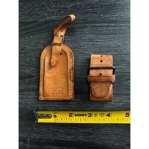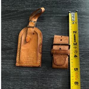 Authentic Louis Vuitton Vachetta Leather Name Luggage Tag And Poignet Set SN919
