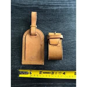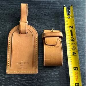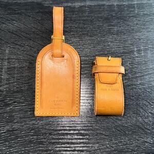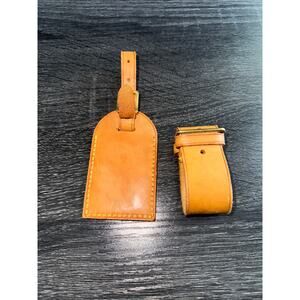 Authentic Louis Vuitton Vachetta Leather Name Luggage Tag And Poignet Set SN921