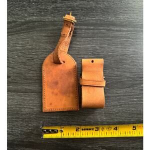 Authentic Louis Vuitton Vachetta Leather Name Luggage Tag And Poignet Set SN928