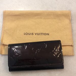 VGUC authentic Louis Vuitton key holder. Made in France. Patent leather.. Embossed with the LV monogram pattern. Light wear on hardware. Purchased from RealReal so it is authentic. Includes Dustbag. All hardware stamped.