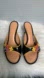 Authentic Louis Vuitton patent leather flower sandals with about a 3in heel in used condition.