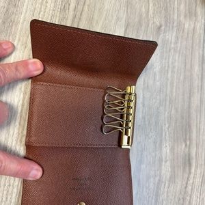 Other than the natural tarnishing on the hardware of the snap and the key rings this piece is in great condition.