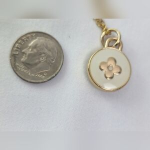 Authentic Louis Vuitton white & gold flower Fleur charm added onto a gold stainless chain. The chain is 20" long.