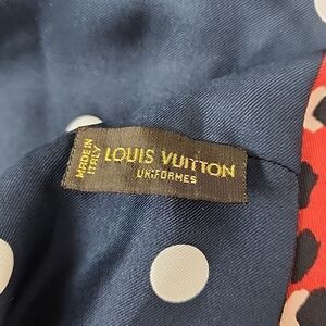 Authentic 100% SILK Louis Vuitton Uniformes Animal Print Polka-dot Snood Infiniti Scarf. Blue, Black, Red , Leopard Print. Excellent Condition. Worn by employees.