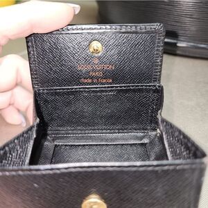 The Saint Jacques is crafted in textured Epi leather from top to bottom. She has double leather shoulder straps. The inside is lined in Grey microfiber suede and has a zipper pocket as well as a key loop. The change pouchette is also crafted from the same Black Textured Epi Leather and matches the bag perfectly.