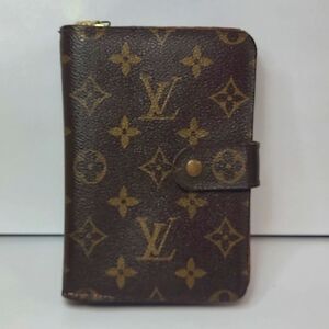 The outer leather showed wearing with tiny cracks in the corners. The hardwares are tarnished. Zipper runs smoothly. Inside wallet has some scratches, marks, tiny crack on the left top corner, 6 card slots, 3 billfold ( peeled & stains inside pockets), a coin pocket om the side w full zipper. Please review the last photo for date code. It made in France. Dimensions ( approx) 6, 4.25, 1". No trade.