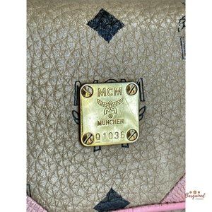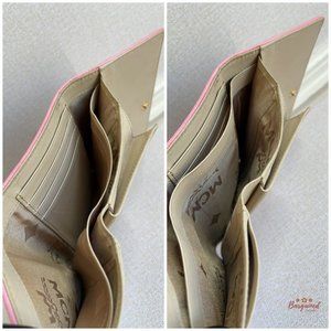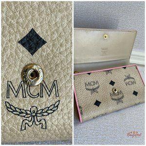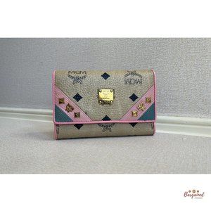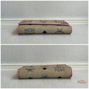 Authentic MCM Beige Visetos Leather Medium Trifold Wallet W Photo ID Window