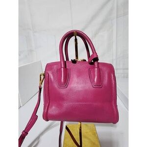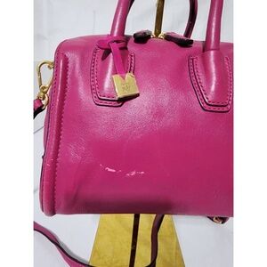 Authentic MCM Leather Zip Satchel Bag Fuchsia Pink