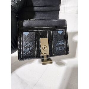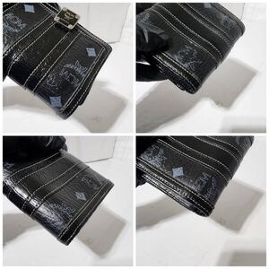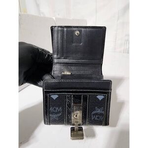 Authentic MCM Monogram Bi-fold Leather Wallet Black/Grey