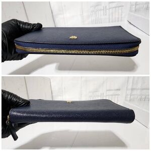 This authentic MCM Round Zipper Long Wallet Navy Blue is in it’s pre-owned condition. The exterior is clean and beautiful. The interior is clean but shows little sign of rubbing to it. Kindly look at pictures above for all details.