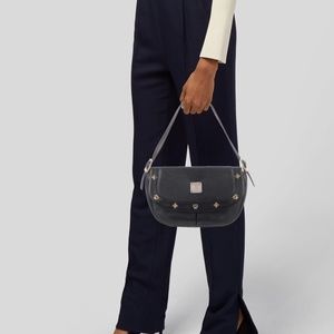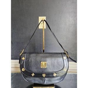 Authentic MCM Saddle Leather Flap Shoulder Bag Black