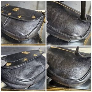 This authentic MCM saddle Leather Flap Shoulder Bag Black is in it’s good pre-owned condition. The exterior leather is clean and beautiful. Interior is clean. Gold hardware. Beautiful shoulder/handbag.