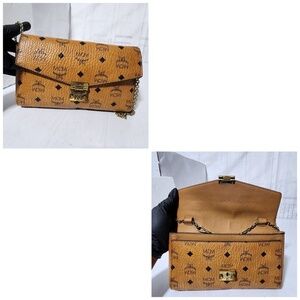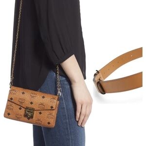 Authentic MCM Small Patricia Visetos Belt Shoulder Bag Brown