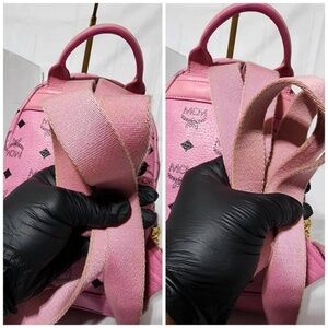 Authentic MCM Small Visetos Stark Leather Backpack Pink