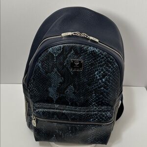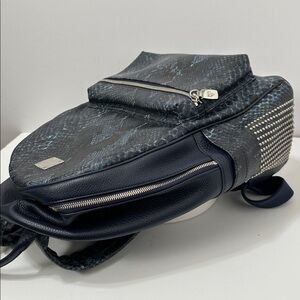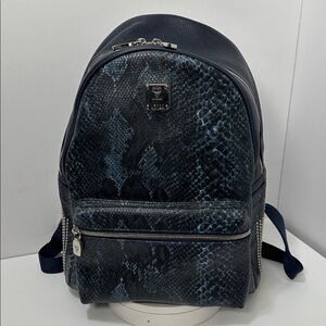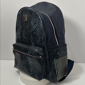 💯Authentic MCM Snakeskin Embossed Visetos Studded Medium Stark Backpack🍀