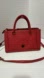 Elegant MCM bag in vibrant red leather. Features striking gold hardware. Perfect for any occasion.