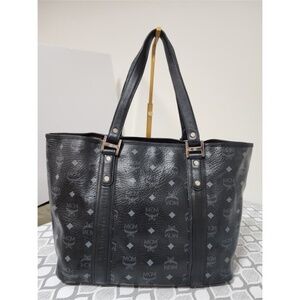Authentic MCM Visestos Shopping Tote Bag Black/Grey