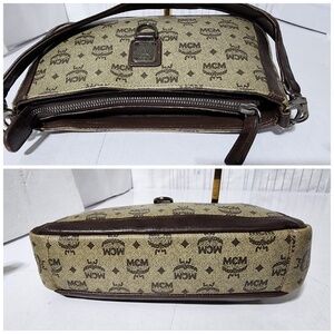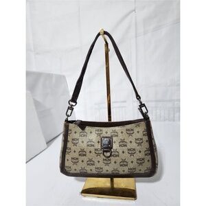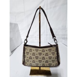 Authentic MCM Visetos Leather Shoulder Bag Beige/Brown