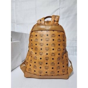 Authentic MCM Visetos Medium Sprinkle Stud Stark Backpack Cognac