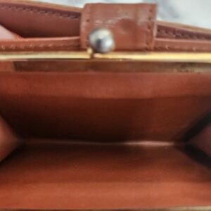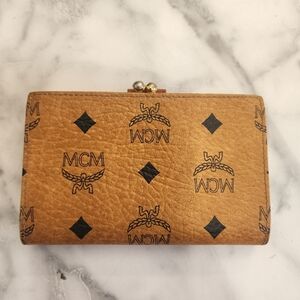 Authentic MCM cognac Logoglam Kisslock Bifold Wallet
