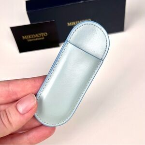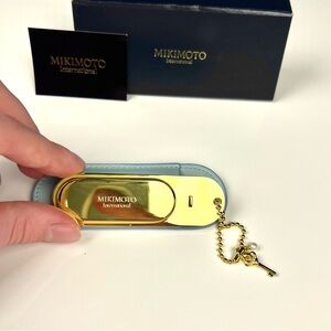 Authentic MIKIMOTO International gold tone metal small mirror with real pearl